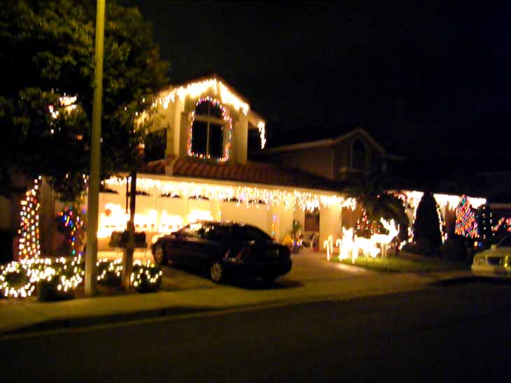 ほとんどの家が電飾してる(左側のちょっと暗い一帯が帰る家=いつも通りで何もデコっていません)秋葉原かっ!←おおげさ