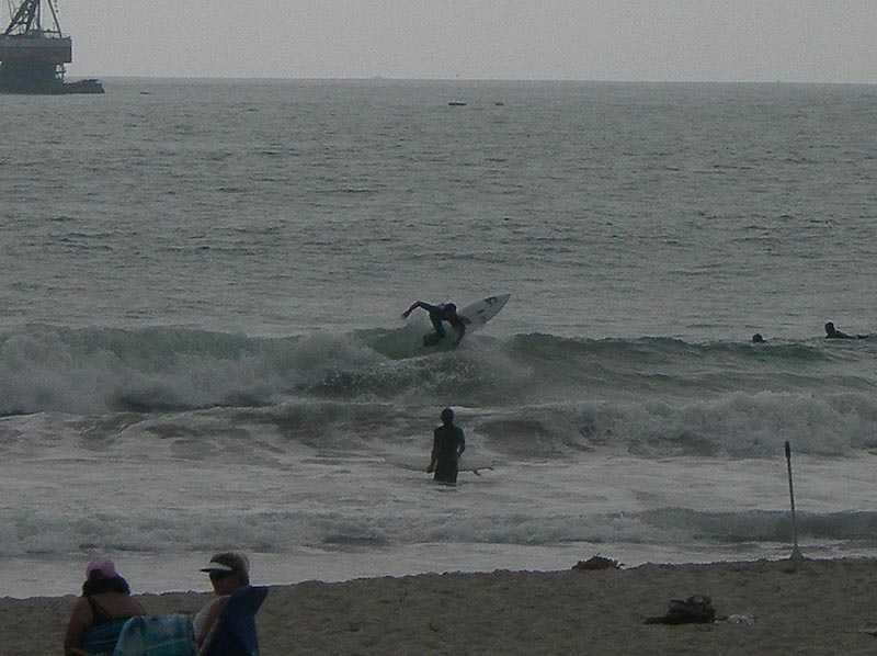 ちなみに1発めのサーフは。ふなきさんやあやちゃん、大ちゃんと待ち合わせたエンシニータス・パイプス。2回目は日没前のオーシャンサイド・ウィスコンシン。どちらも腰~腹サイズと、サイズダウンしているようです。