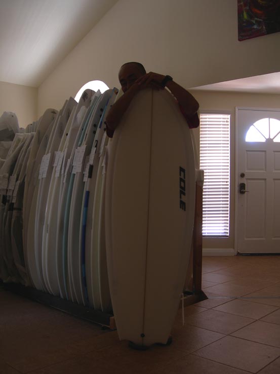 葉山BEACHの黒野さん。LAX到着後、NAKISURFに顔を出して頂き、選んだ板はBD2!恥ずかしそうに、隠れ気味・・