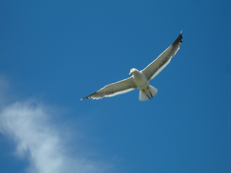 とにかく良いお天気!ペリカンは綺麗にV字のフォーメーションを組んでいます。