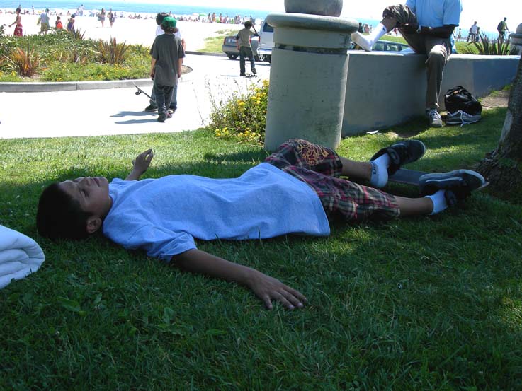 気持ちよくなってスケートを枕にして木陰で昼寝。目覚めたら、同じ家族から冷たいアイスレモンティーをさぁどうぞ。