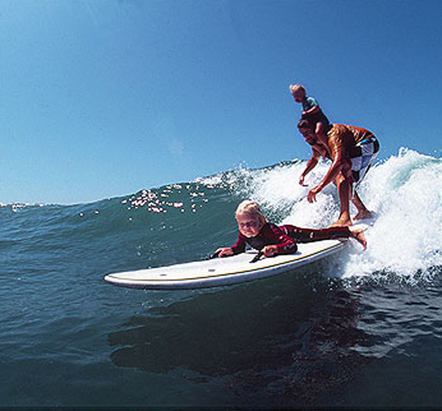 普通のサーフィンだって、もちろんアリ。実はブラックボールのとき、どうしてもサーフィンがしたい!ということで始まったINTのスポンジ製ソフトボード。性能はお墨付きです!