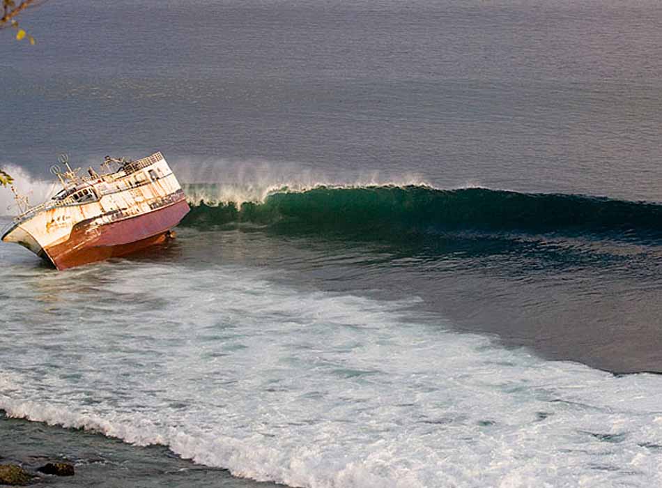 ワールドクラスのレフトのブレイクであるパダンパダンの棚にひっかかり、バリの人々を困らせていたこの台湾の船。