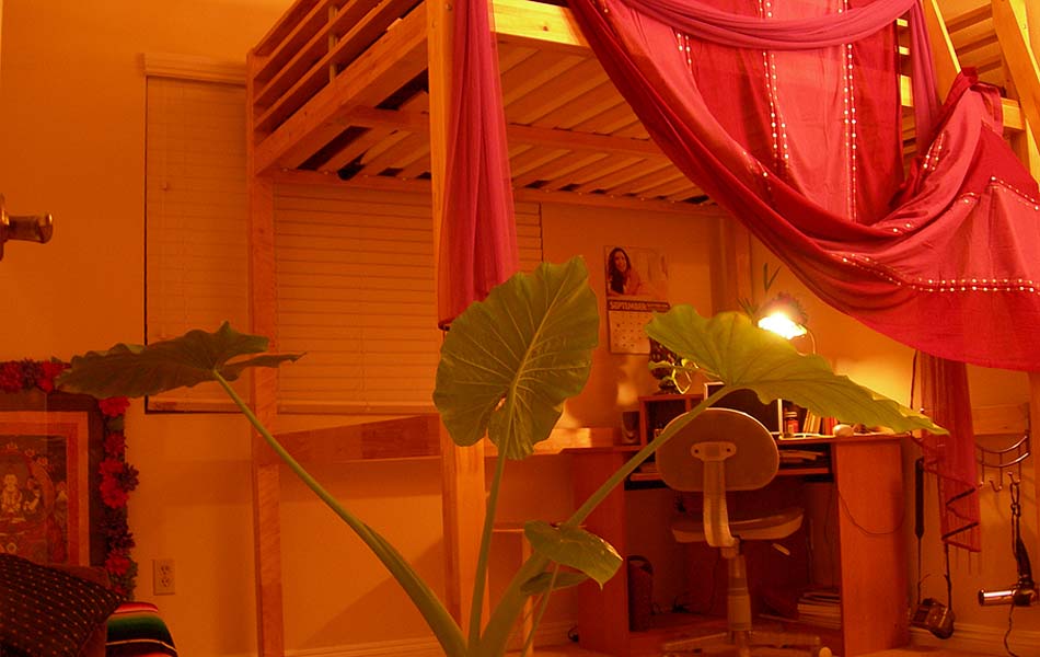 普段は上がっているカーテンをおろし、更にこじんまりと秘密基地っぽい気分でコンピューターをいじっています。