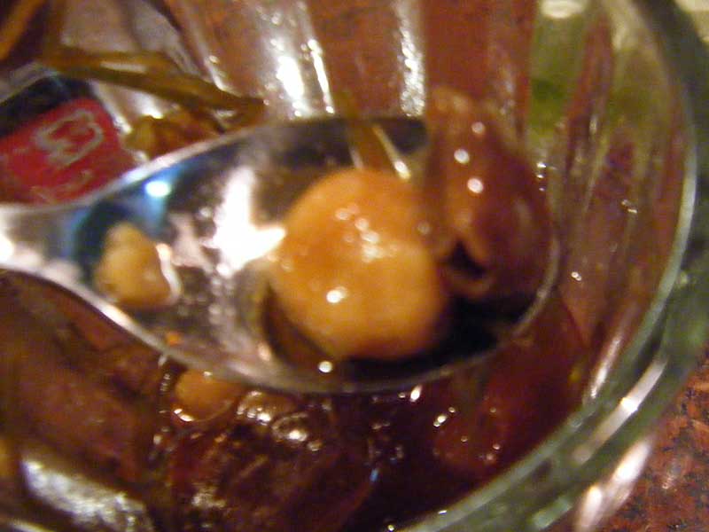 かなり独特の味。正露丸が入っているみたいな味のもの(ワカメも・・)や、芝生の汁のようなジュース。それが・・段々美味しく感じてくるのが不思議。漢方薬とデザートが合体してるみたい。