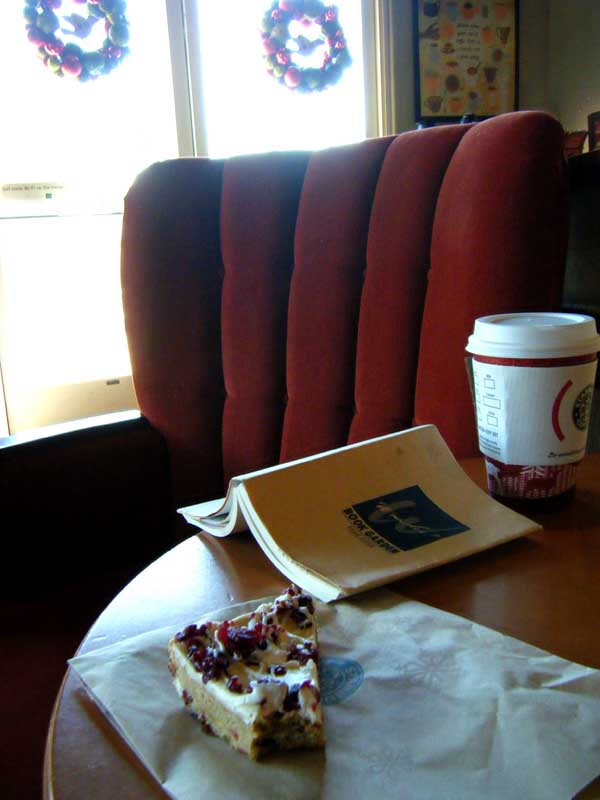 ラグジュアリーなソファーと美味しいコーヒー、そして最近ハマっているのがクランベリー・bliss・barっていうケーキみたいなやつ。この3点セットを揃えるには。$4で幸せな気分になれちゃう。