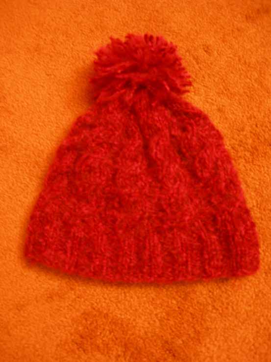 先日から編み始めた、たっぷりモヘアのビーニーが完成!