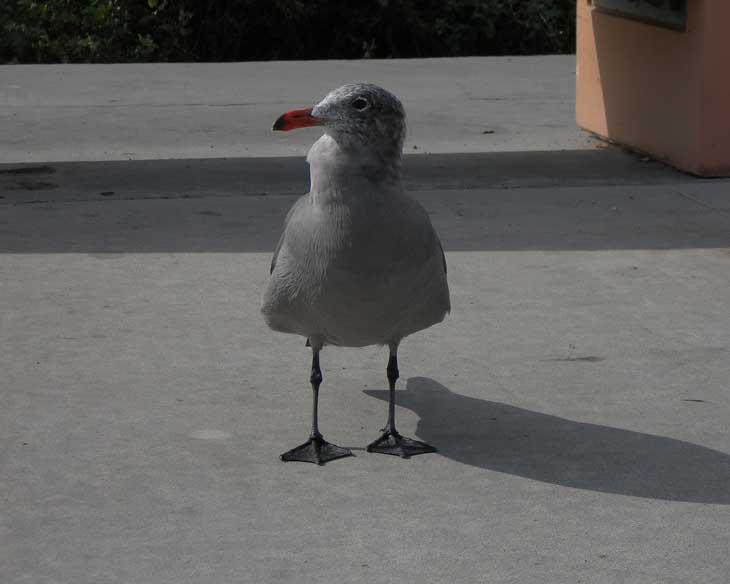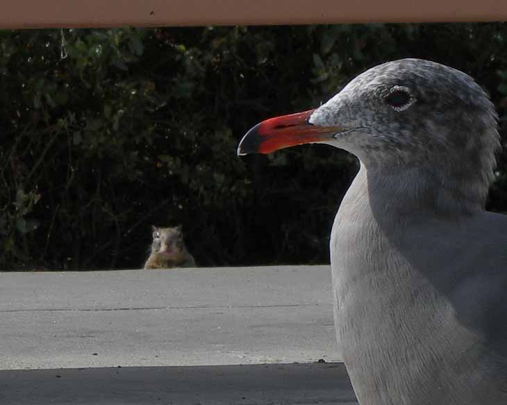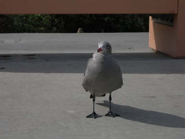 ブリトーを狙ってカモメが接近。その距離1mほど。首が膨らんでるので、何か食べたばっかりだと思う。