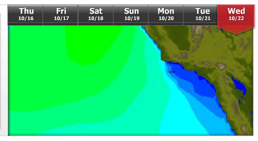来週半ばには、きっと北カリフォルニアに到達。来週末には・・まさかのグランドスウェル!?