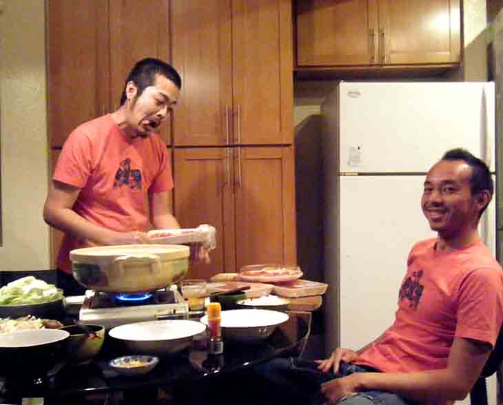 ディナーは12日に誕生日だった、こうすけくんのお祝い。弊社たろうくんとともに、家しゃぶしゃぶ♪偶然、二人は同じイーグルTシャツ♥