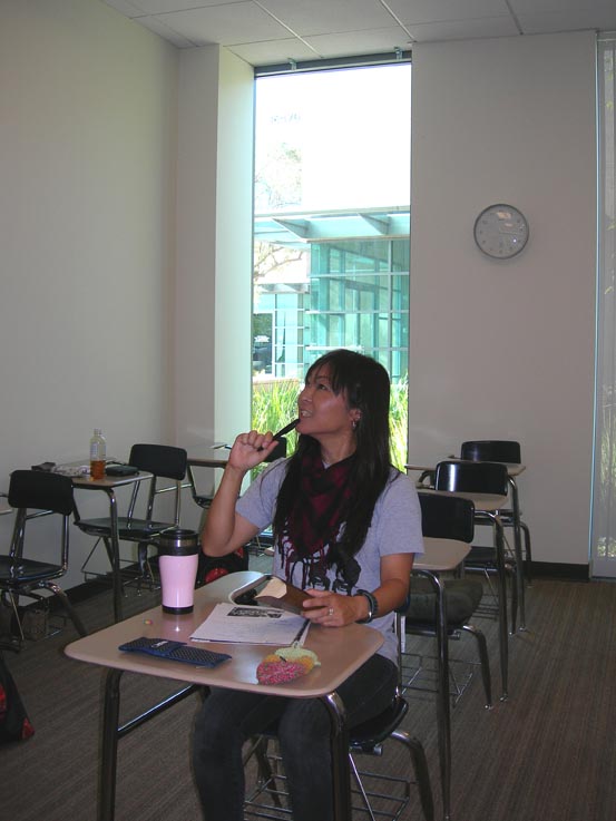 うそ ヾ(ーー )ォィ 休み時間にトレモニーシャ(先生)と声をひそめてお喋りしてたとこ。