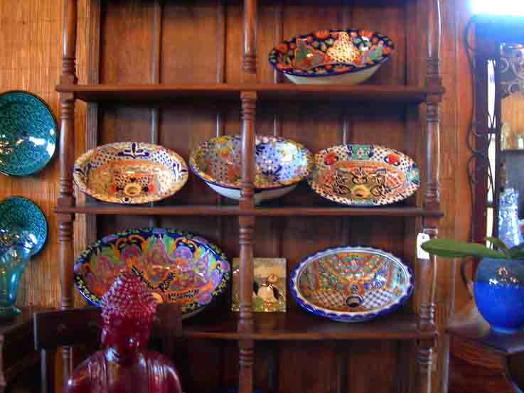 エンシニータスにある、無国籍インテリアショップへ。まるで大きなお皿が並んでいるみたい。