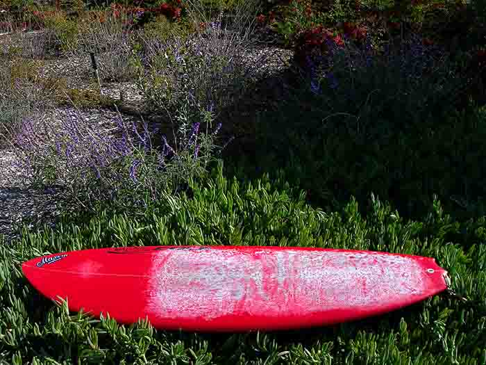 越してくる前もアメリカへの引越しの準備や身辺整理、はたまたパーティーなどで海に入っていない時期が重なり、せっかくカリフォルニアの良い波があっても、先の尖ったパフォーマンス系の板にまるっきり乗れなくなっていました。本当にパワーがなくテイクオフもままならなかったのです。