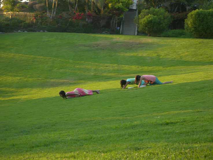 滑って遊んでる(* ̄ー ̄)ノ お姫様のようなドレスも、どうでもよくなっているようです。