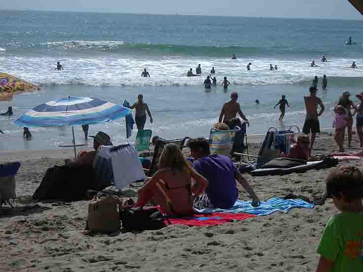 バンドの生演奏に色々な会社のブースが設置されている、巨大なビーチ祭りですね!