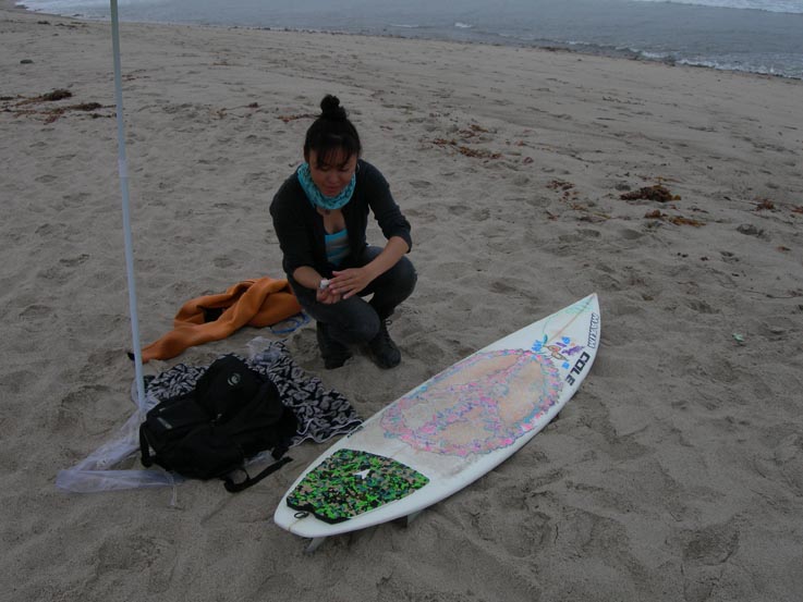 その割には、何故か人が乗っていない波が見受けられたので5’10”×18 1/4”×2 1/8”、エポキシ素材のHPSをワックスアップ。ワクワク(^ー゜)