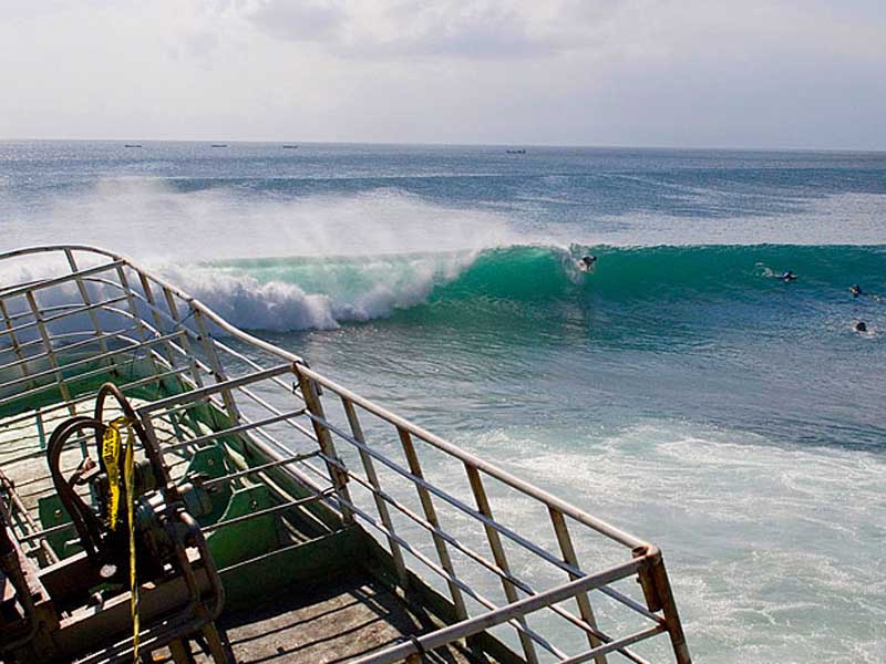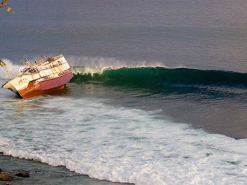 インアドネシアはバリ島が誇る、レフトのバレル、ワールドクラスのゲボガバブレイク、パダンパダンに座礁船。