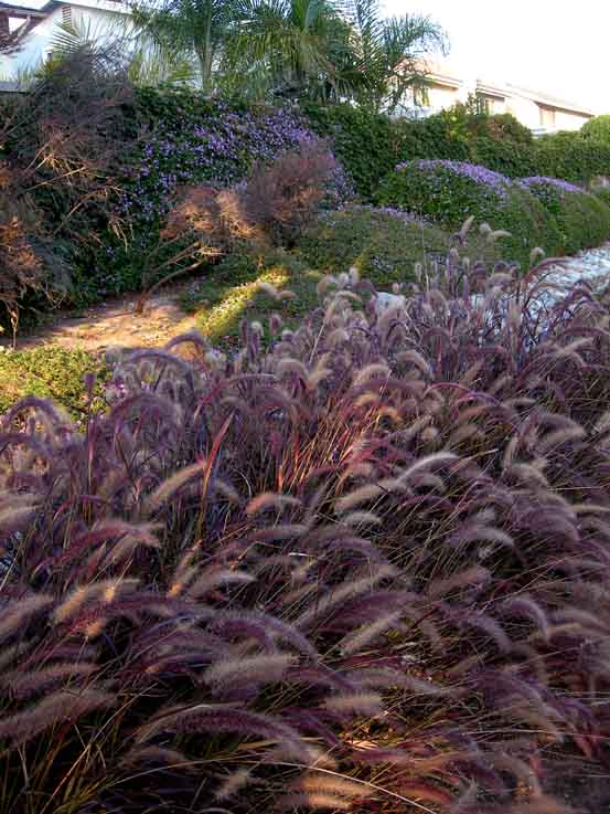 こちらは猫じゃらし系の何か。パープルでとっても派手です。