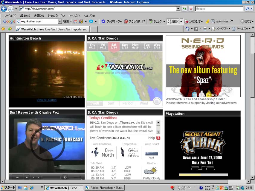 サーフ系のニュースの更新も綺麗な画像付きで早い。地球上の色々な波がわかる、世界一の波情報サイトです。