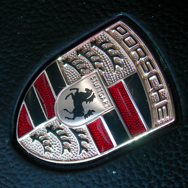 ポルシェのエンブレム。波の模様に見えるけど、本当はなんだろう?たてがみ??