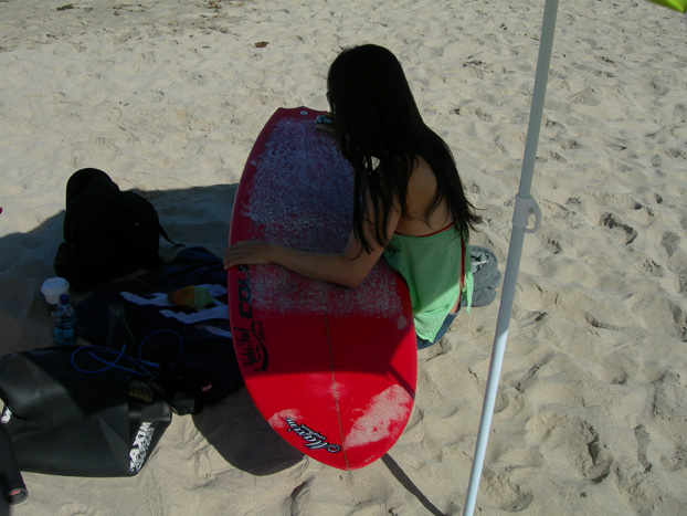 そんなとき、板全体、特にレイルは全部WAXを塗ってないと、板を流すハメになることに初めて気づきました。