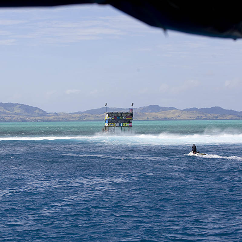 初日のタヴァルア島・レストランツから、2日目の会場は同じ島のクラウドブレイクへ移動。