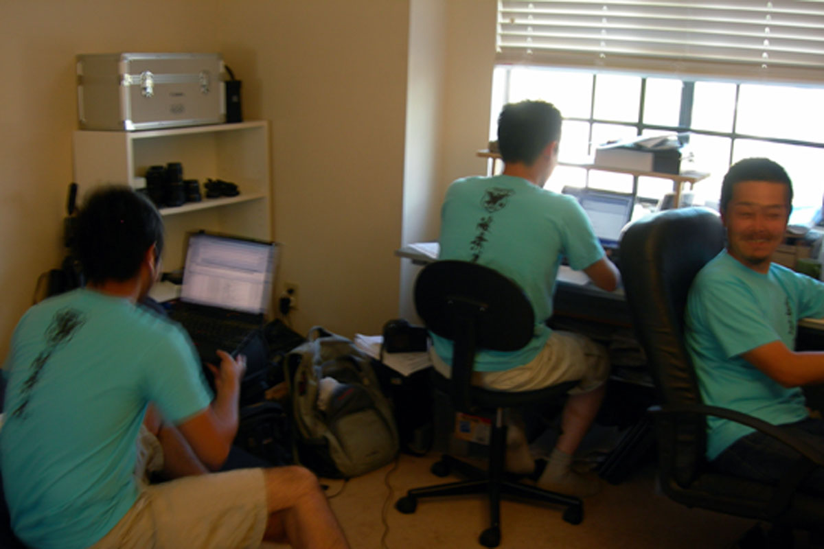 仕込み一切なし。たまたま3人が同じ逆真会のTシャツを着ていたため、