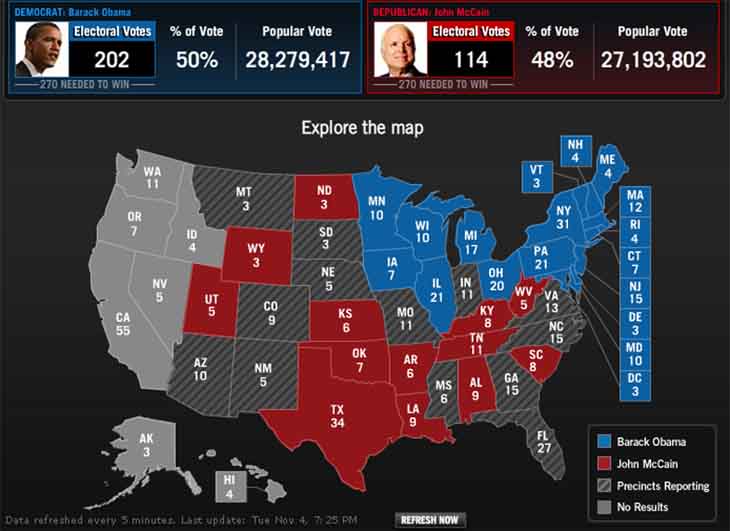 ハワイ出身のオバマが優勢。